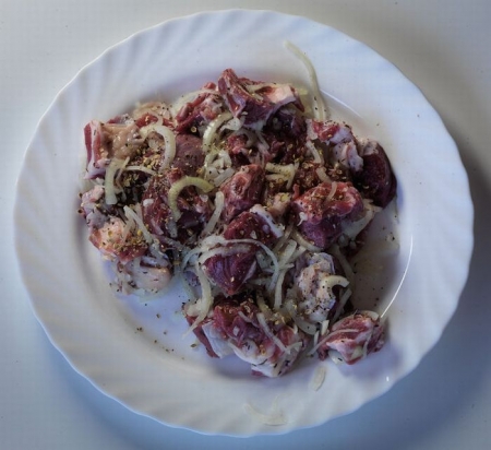 Часть мякоти натрем солью, черным перцем и не спешим и обжарим на масле до готовности. Оставшуюся мякоть смажем горчицей, рубленым его величество чесноком, посолим, поперчим и запечем в духовке.