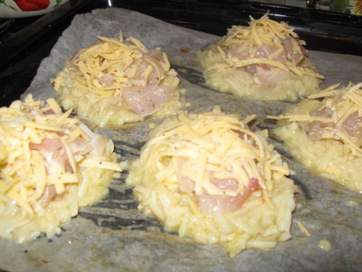 Сделаем надрезы в каждом «гнездышке» и заполним их начинкой.