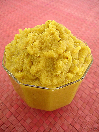 3. Разрежем головки горизонтально пополам, выдавите мякоть, протрем ее через сито. Беречь пасту в холодильнике, накрыв крышкой или пищевой пленкой, 1 неделю.